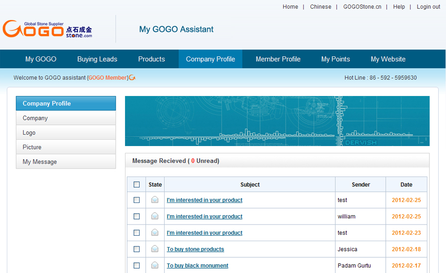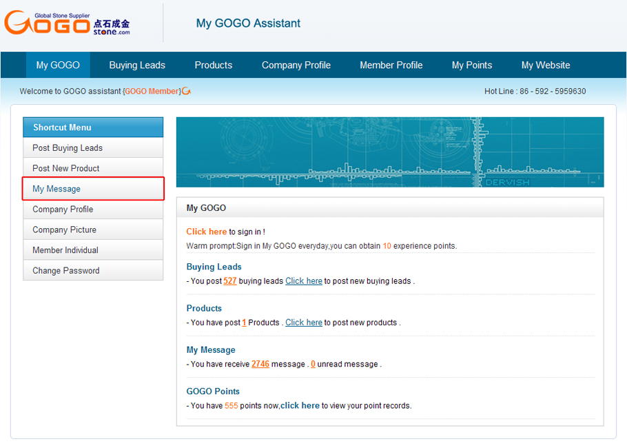 Sign in your member ID,click “My message” to inquire online.