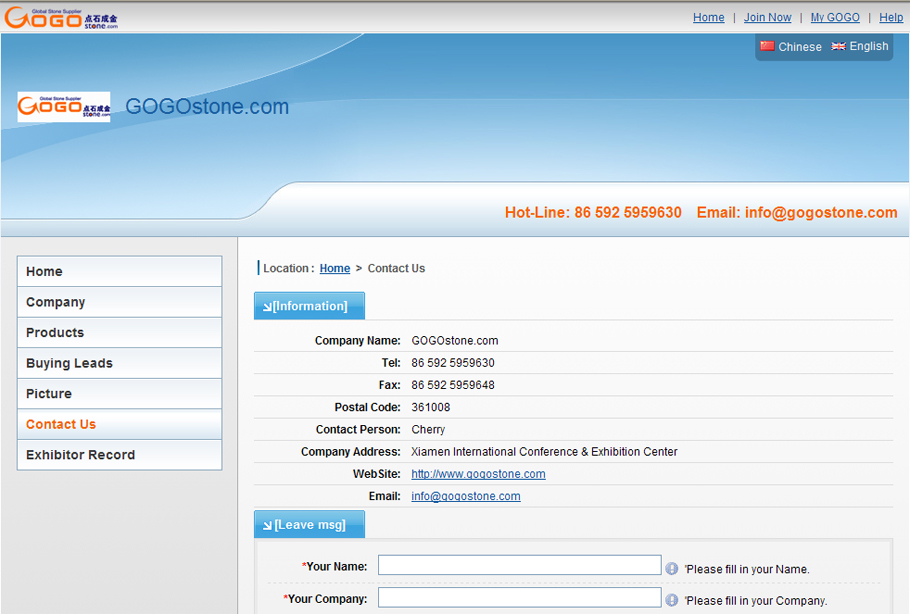 Sign in your member ID, then you can view the company’s detailed contact information:email,telephone number,etc.