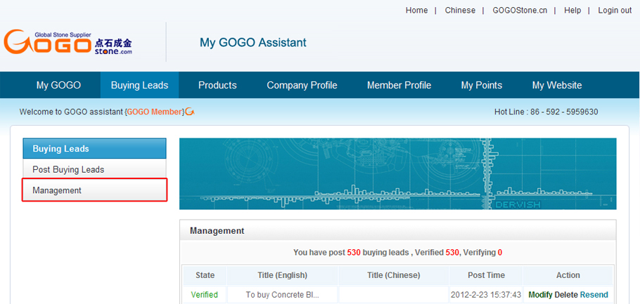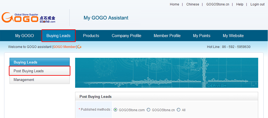 Sign in My GOGO, click “Buying leads”→ “Post Buying leads”to fill in the form, Fill in the title of buying leads, for example: To buy G654, you should describe G654 in detail, including: size, thickness, processing, packing and quantity etc. and click the button “Post Now” to post this buying leads.